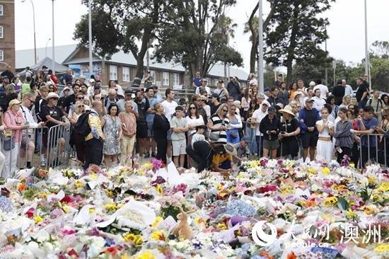 自15日起,大批市民自发前往事发地附近悼念。记者16日在现场看到,枪击事件发生地点附近的邦迪凉亭外摆满花束和蜡烛,持续有民众前来,通过献上花束、点燃蜡烛以及吟唱祈祷等方式,寄托对遇难者的深切哀思。